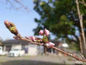 事務所前に植えた桜が花をつけ、もうすぐ咲きそうです。