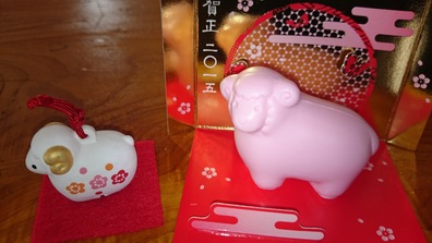 左は知人の博多人形作家の馬場ちゃんから届いたヒツジです