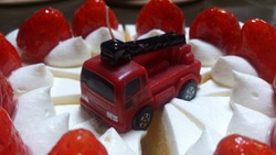 はしご車って火を消すのでは?と思いましたがチョコのプレートを外し 堂々と真中に