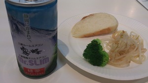 写真は研修の中で作られた  パン もやし炒め 茹でたブロッコリー です