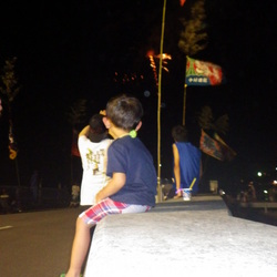 何故か仁王立ちでヘリコプターを見つめる息子とお友達