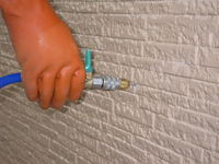 玄関部は外壁に小さな穴をあけ、薬を注入します。