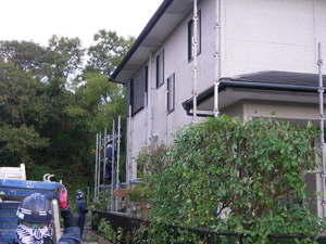 今日から諫早市飯盛町のK様邸 足場をかけはじめました