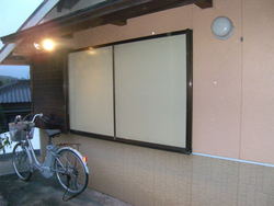私達の事務所も養生です。台風時にしか閉まる事のない雨戸で・・・