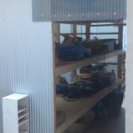 車庫に使っていたシャッターを撤去せずに台風時の養生に使える様、既存の状態で残したまま施工しました。
