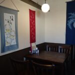 和のテイストを残しつつ、シックな感じに仕上げました。又、座席や通路のスペース等は、実際に椅子を並べて座ったりしながら寸法を決め、店長の思い(イメージ)をかたちに確認してもらいながら仕上げました。
